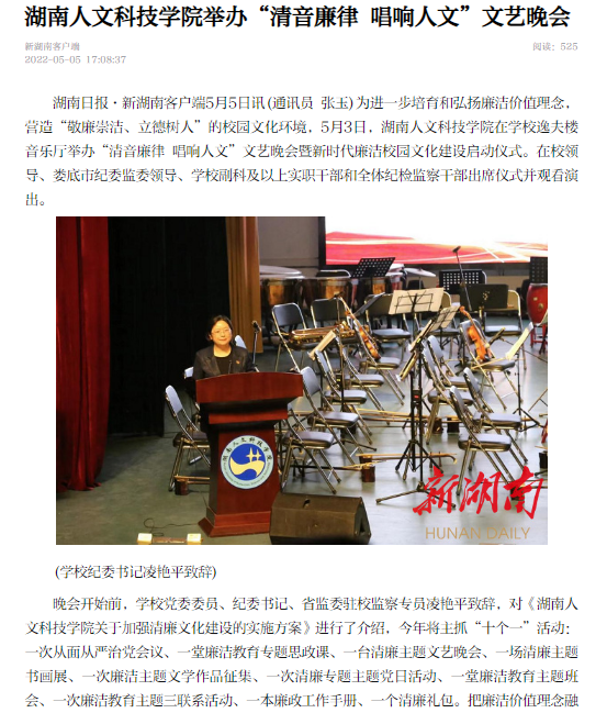 新湖南----beat365中文官方网站举办“清音廉律 唱响人文”文艺晚会