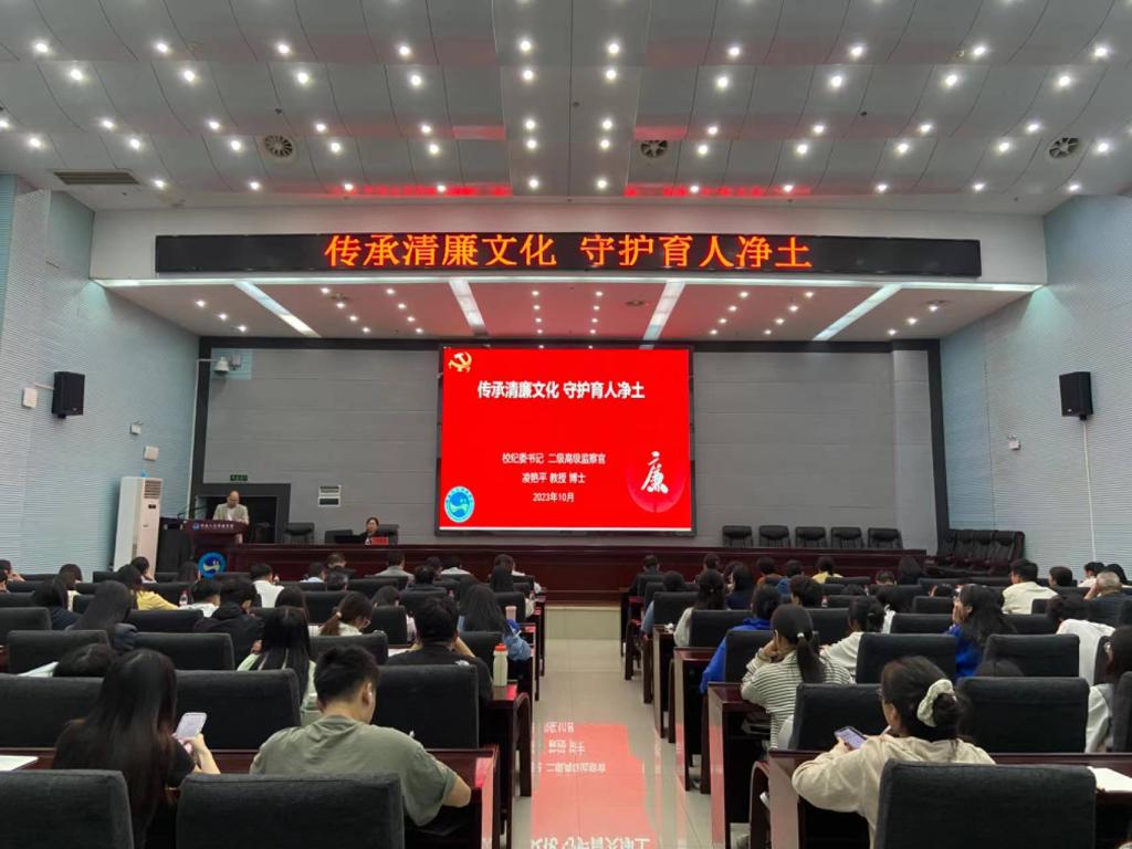 凌艳平强调,清廉是中华民族传统美德,也是中国共产党的优良作风,全体师生要牢记习近平总书记对新时代廉洁文化建设提出的要求,注重个人党性、师德、家风的修为,涵养求真务实、团结奋斗的时代新风。希望老师们以德育廉、以廉润心,不断夯实清正廉洁根基;希望同学们在校园里不负青春,奋力拼搏,“守清廉底色,做有为青年”!