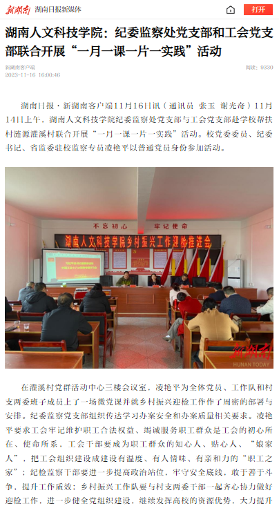 新湖南----beat365中文官方网站:纪委监察处党支部和工会党支部联合开展“一月一课一片一实践”活动