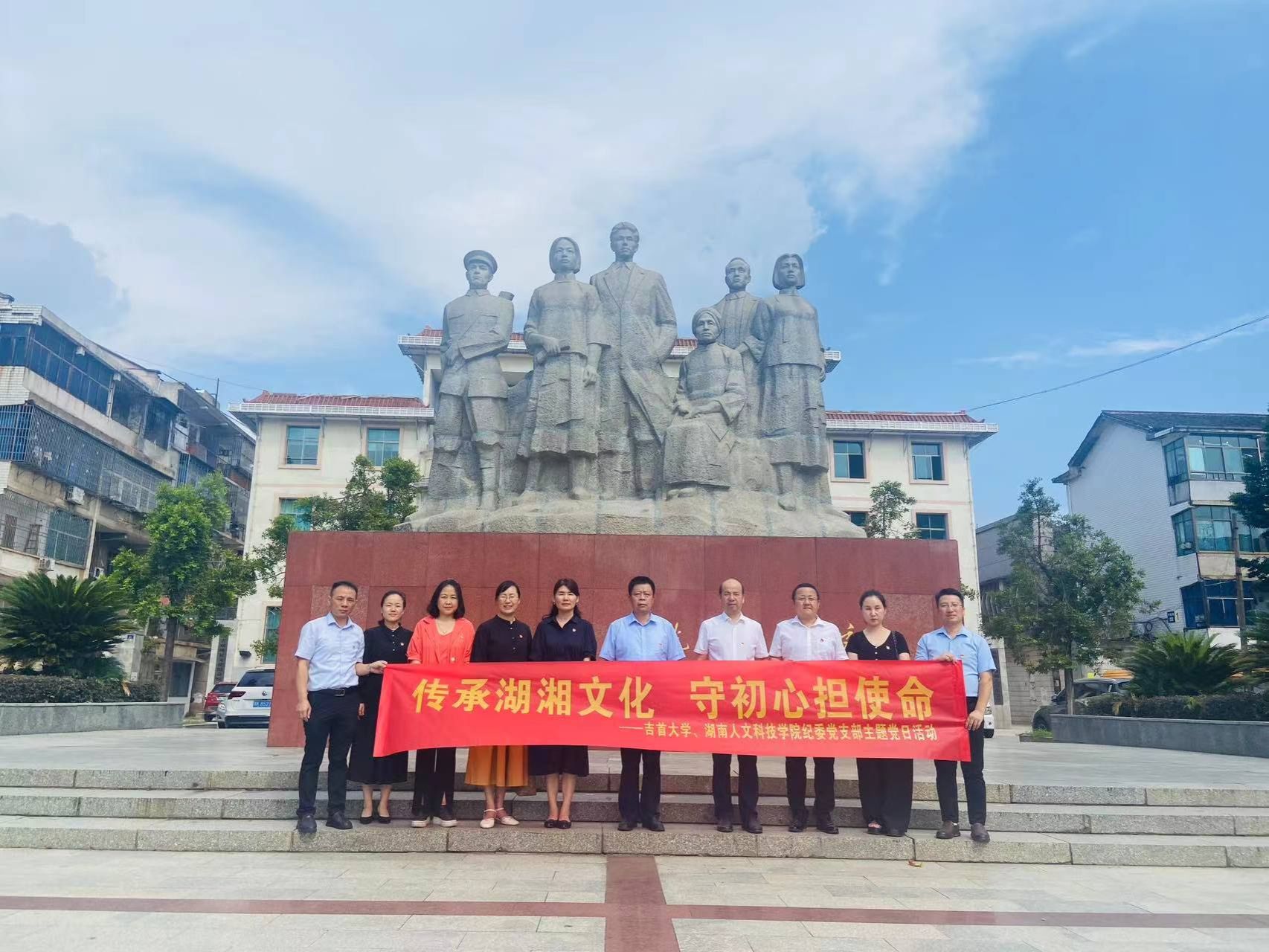 9月11日,吉首大学党委委员、纪委书记、省监委驻校监察专员刘启定带队来beat365考察交流纪检监察工作,联合开展“传承湖湘文化,守初心担使命”主题党日活动。学校党委委员、纪委书记、省监委驻校监察专员凌艳平主持会议,两校纪委、监察专员办负责人、校纪委委员代表和学院负责人代表及纪检监察干部参加会议。