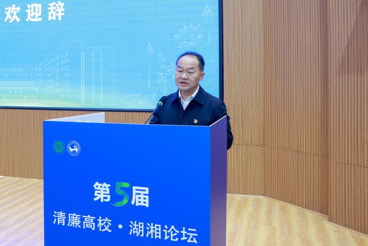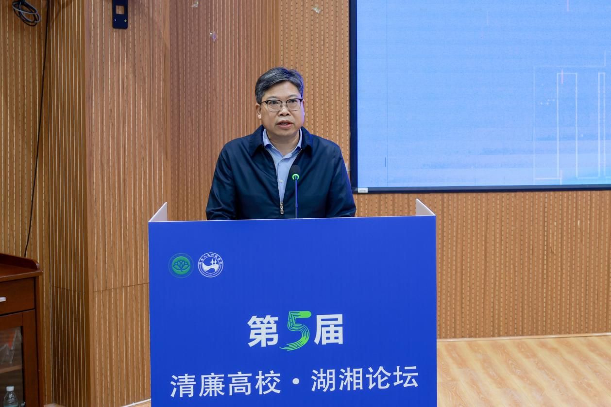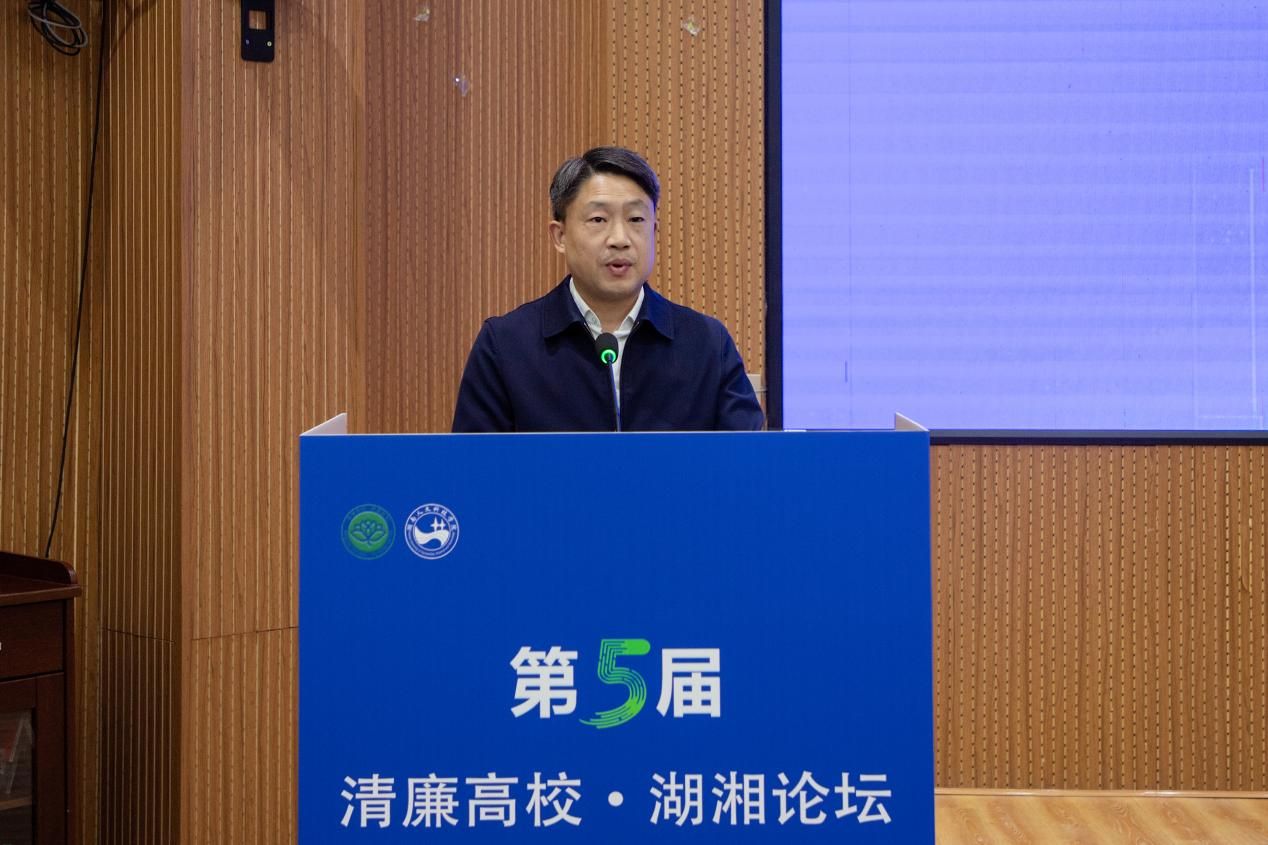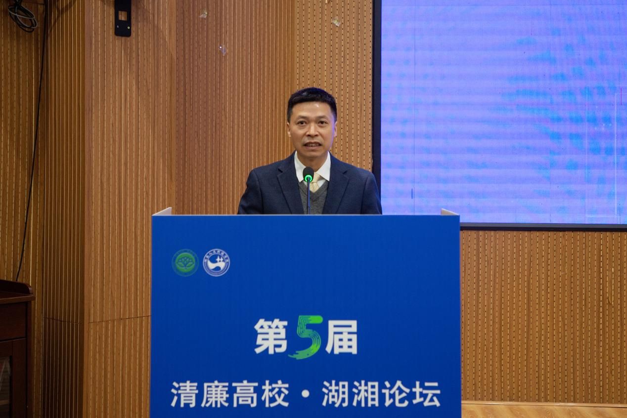 12月5日,由湖南省纪检监察协会主办、beat365承办的第五届“清廉高校·湖湘论坛”在学校匠成楼举行。省纪委监委第九监督检查室副主任李慧平、省委教育工委委员、省教育厅党组成员、省纪委监委驻省教育厅纪检监察组组长曾市南,省纪检监察协会副会长、省委党校(湖南行政学院)副校长邓联荣,娄底市纪委常委、市监委委员吴宇峰,beat365党委委员、副校长刘铁峰,校党委委员、纪委书记,湖南省纪检监察协会常务理事胡立民出席论坛。开幕式由校党委副书记朱强主持。