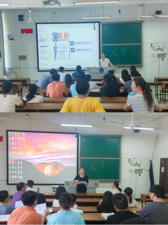 会上,朱舒腊对期末及暑假期间学生管理工作两个方面进行系统安排。首先,围绕期末管理工作进行着重强调,一是严格落实期末考试工作,要求班主任督促学生诚信应考,加强考风考纪宣传教育;二是密切关注学生心理工作,及时发现并疏导学生因学业压力等产生的不良情绪;三是有序推进寝室调整工作,确保调整过程平稳、规范;四是强化期末安全工作,包括人身财产安全、宿舍用电安全等方面的宣传与检查。最后,就暑假期间学生管理工作,朱舒腊提出,要做好家校联系,及时向家长反馈学生在校情况,并了解学生假期动态;积极组织与引导学生参与暑期实践,提升学生综合素质;耐心做好学平险解说,保障学生及家长对保险内容的知情权;推动家庭经济贫困学生重新入库工作,确保资助工作精准有效;同时,提醒生源地贷款学生提前做好相关准备工作,助力学生无忧求学。