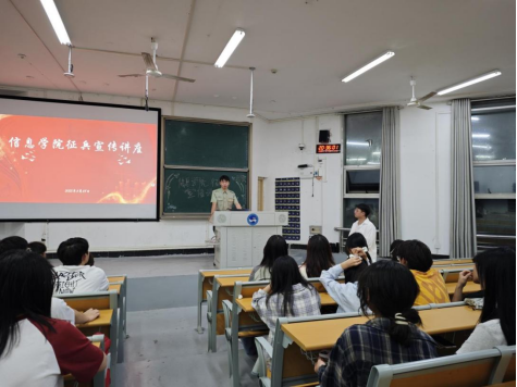 本次欢送会既是一次庄严的出征仪式,也是一堂深刻的国防教育课。成嘉毅作为国防教育宣讲团的一员,与团队成员齐心协力,在2025年的征兵宣传工作中取得了显著成效。宣传队通过主题班会、宿舍走访、专题讲座、线上“入伍意愿交流群”等多种形式,共吸引了18名同学踊跃报名参军。其中24级物理学1班的刘陈益同学作为唯一的女生,正在役前训练中挥洒汗水。目前,2025年已确定走兵6人,其中毕业年级5人,在校生1人。这些数字的背后,是信息学院学子对国防事业的热爱与执着,是他们用青春书写的壮丽诗篇。信息学院始终高度重视国防教育,积极引导优秀学子携笔从戎、报效国家,将青春华章写在祖国最需要的地方。
