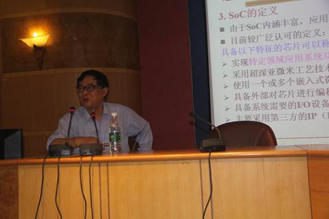 李教授首先简要介绍了自己的科研工作经历及部分科研成果,接着就片上系统(SOC)的概念内涵、技术内涵等进行了阐述,以ARM7及Estar、麒麟92X等芯片为例,重点向大家讲解了SOC设计重用方法、SOC系统级设计方法。并对目前SOC技术的标准化发展进行介绍。李教授针对目前的片上系统的发展状态,解说了超摩尔定律的发展模式,并对未来5-10年的片上系统的发展模式进行预测。最后李教授还谈到信息技术的飞跃发展的时代如何在未来的工作中保持工作热情、学习热情,学习新技术、研发新产品。