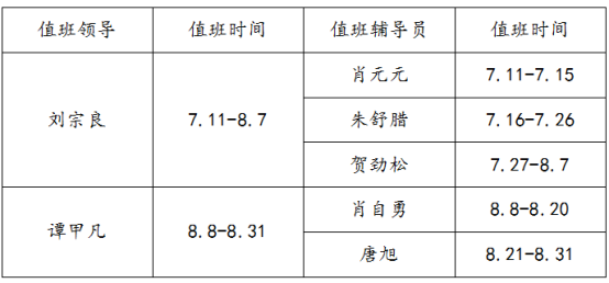 信息学院学生管理工作暑期值班安排表