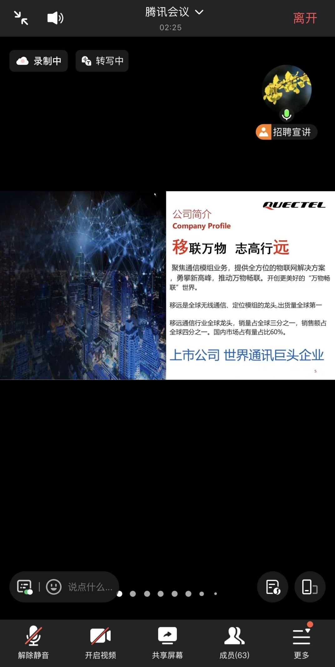 1月15日下午,信息学院与移远通信公司联合举办线上专场招聘会。