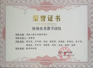 2020年,网络工程教研室被评为湖南省普通高等学校本科教育教学优秀基层教学组织;2021年,网络工程专业教学团队获评“校级优秀教学团队”。