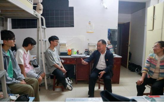 党委副书记朱强与18栋504宿舍物理学专业的学生进行沟通交流。他强调,宿舍是学生成长的重要空间,应当营造“和谐、互助、奋进”的生活氛围,希望同学们在集体生活中学会相互理解与包容,以“谋远、谋大、谋强”的格局共同维护良好的生活环境。他指出,当代大学生要树立“大视野、大规划、大格局、大学问”的成长理念,将个人理想融入国家发展大局,避免陷入“能力陷阱”,要通过持续学习和每日反思实现自我提升。最后,朱强书记寄语同学们要牢记“读好书是根基”的成长要义,在“反套路”时代注重培养创新思维,运用“蛛网模型”构建知识体系。同时要保持积极乐观的“快乐精神”,从作息规律到人际交往等各方面全面提升综合素质,努力成长为德才兼备的新时代人才。