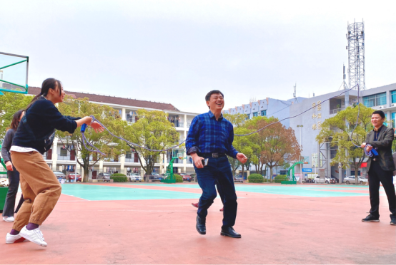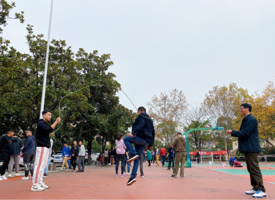 活动现场各教研组组员无论男女老少都积极参与、尽力拼搏,在比赛的过程中,各组打气加油声伴随着一张张笑脸都绽放在冬日温暖的阳光里。就连路过的同学们都停驻脚步,给老师们加油。平日里严肃认真的老师们认真跳绳,一下、一下又一下,连计数的工作人员随着计数的增多也不免语气激动起来,整个比赛过程紧张却不失趣味。赛后各个教研组的老师们交流经验,并祝贺比赛获胜组,在一片欢声笑语中落下帷幕。