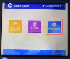 车站取票机绑定资质:(持身份证、火车票优惠卡)