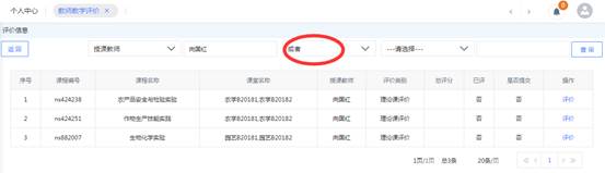 注意:上图中,评教查询对象时,选择查询条件时,若只用一个条件,后面的选项应改为上图红圈中所示为“或者”,否则可能不能显示查询结果。