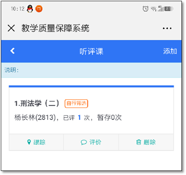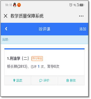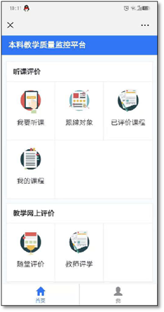 电脑端操作:进入学校数字化校园系统,在“我的应用”中单击“听评课系统”,进入系统后再选菜单栏中“质量中心”,进行选课、听课评价。