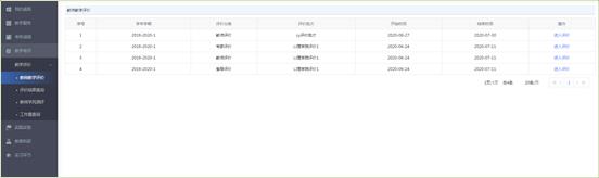 步骤1. 请依次点击【教学考评】-【教学评价】-【教师教学评价】,即可查询教师教学评价活动分类情况,如下图教师教学评价活动列表页面。