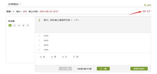 B、进入考试,界面如图所示,由老师设置考试时长以及考试题型。