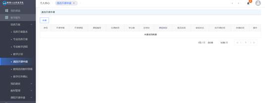 2、 点击【教学服务】模块【培养方案】下的【通选开课申请】进入通选课开课申请操作界面