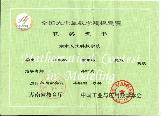 学生参加数学建模竞赛获全国一等奖和省一等奖