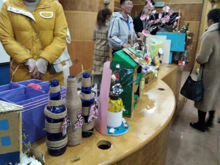 本次活动主要有两个内容。一是收集校内的可回收垃圾。同学们将自己双十一的快递盒还有其他可回收垃圾收集起来到活动摆点处换取了精美的小礼品,组织部干事们也会把同学们收集到的垃圾卖掉,然后把钱捐给爱心支教,去帮助有困难的孩子。二是废弃物品设计手工艺品和绿色环保绘画设计比赛。参赛选手在一周的时间内用收集到的可回收垃圾设计出了样式新颖的作品,有的选手利用牙签设计校徽,有的利用鞋盒做出图书馆,还有的利用快递盒制作了一个十分炫酷的纸装机器人……进入决赛的小伙伴们在决赛上为大家解说其作品的意义以及背后的故事,比赛获得第一名的作品是“千秋雪-图书馆之冬”,它的制作者介绍道:“图书馆和环保之间有一定的联系,例如共享、循环使用方面,我们想通过这件作品表达一种共享和循环使用的环保理念,呼吁大家保护环境从身边做起,从小事做起。”