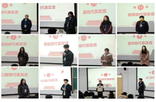 首先,大会第一项,各部门代表依次发言,详细陈述了对部门未来工作的规划,并汇报了本学期的工作和创新亮点。