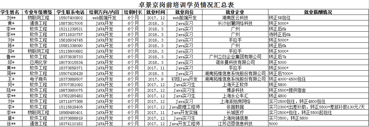 教学效果及评价:在学习期间,卓景京以实战项目为驱动,用具有企业级丰富开发经验的老师给学生进行技术授课与交流,并辅以职业规划和职业素养提升课程,完善的实践教学模式让学生不但了解到了企业级的技术与开发思想,并且较好的提升动手能力和职业素养,取得了良好的教学成果,获得学生及合作企业的一致好评