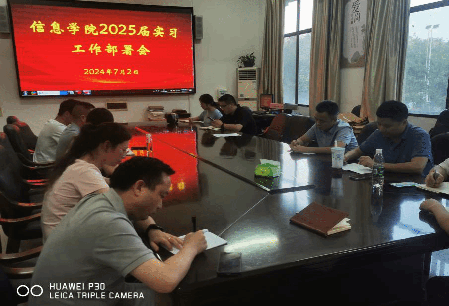 7月2日晚上,信息学院在百全楼211会议室召开了2025届学生实习工作部署会议。副书记朱舒腊、副院长曾志峰、各专业教研室主任及2021级班主任参会。曾志峰主持会议。