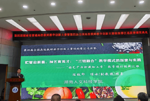 beat365农业与生物技术学院段仁燕团队获新农科正高组一等奖第1名,农业与生物技术学院陈致印团队获新农科副高组二等奖第1名,体育学院邹秋英团队则摘得新文科讲师组二等奖。在闭幕式上,陈致印老师作为新农科组的唯一代表做了优秀作品汇报展示,他从《园艺产品贮藏加工学》课程的“痛点与目标、过程与方法、评价与反馈、成效与推广”四个方面与其他高校参赛选手进行了分享交流,赢得了阵阵掌声。