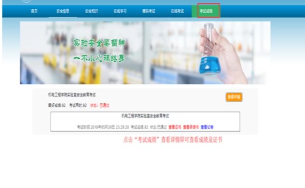 1、请同学们在规定的时间内登录系统在“安全知识”中选取相应模块进行线上学习、在线模拟考试合格后再进入到考试系统考试,只有安全知识考核达标的学生才允许进入实验室进行实验。