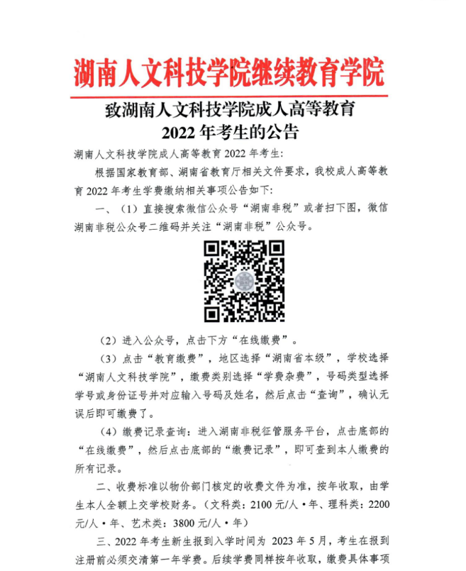 根据国家教育部、湖南省教育厅相关文件要求,beat365成人高等教育2022年考生学费缴纳相关事项公告如下: