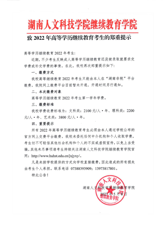 凡是未按学校提供的方式向学校直接缴费,因此造成的所有损失由考生个人承担。联系电话07388393909;13973817801。