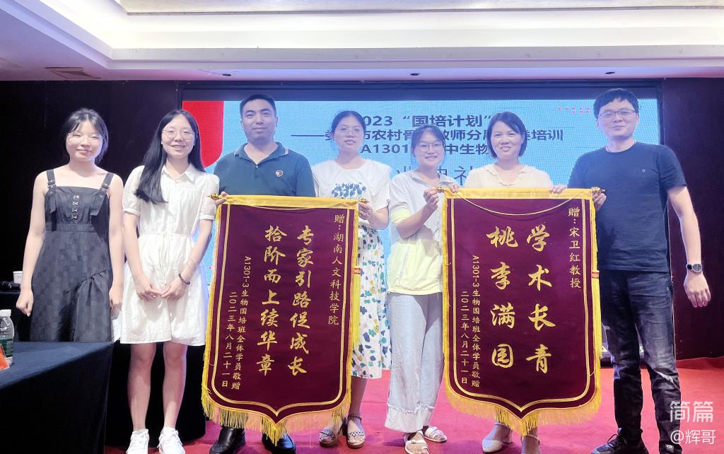 项目实施顺利,项目组的每位老师精心备课,传道解惑,全体学员勤学善思,积极实践,圆满完成全部教学任务,来自娄底各县市的50名学员受益匪浅,收获颇丰,为今后开展好生物教学工作打下了坚实基础。结业典礼上学员们制作的“回忆录”视频,重温了这七天的精彩瞬间和成长经历,班干部代表全体学员向此次国培项目承办方beat365中文官方网站和项目负责人赠送锦旗以表感谢意和敬意。项目负责人宋卫红副教授、培训班班主任张劲松副教授为获奖学员颁发荣誉证书。