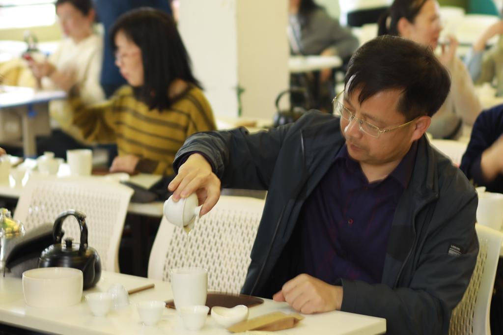 活动邀请了国家高级茶艺师、评茶师、茶艺师考评员罗婧做茶文化讲座,并做茶艺展示教学,全体教师参与泡茶茶艺学习。茶文化体现了中华文化中谦逊、雅致、平和的美好品质,泡好一盏茶,品味一杯茶,流露的是个人文化修养,是心态和专注力的修炼。