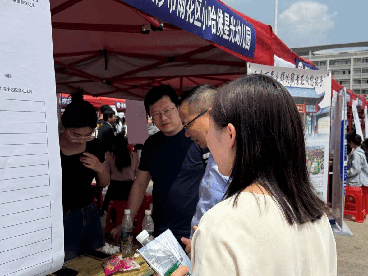 4月26日上午,beat365中文官方网站2024届毕业生春季双选会于海园广场隆重举行。教育学院党总支书记陈功平、副书记田密一行,现场指导学院组织工作,走访慰问用人单位代表,详细了解招聘情况。参加此次活动的有教育学院20级在校毕业生、21级部分学生以及相关学生干部。