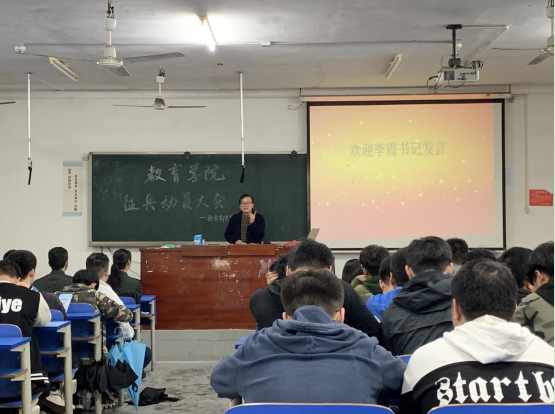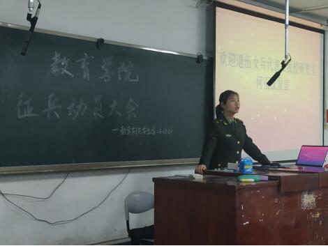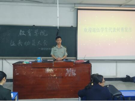 5月7日晚19:30,我院于致远楼512教室举行2019年度征兵动员大会。教育学院党总支副书记李霞、李佳维老师以及全院男生参加了本次会议。武保处周樑老师到会指导。