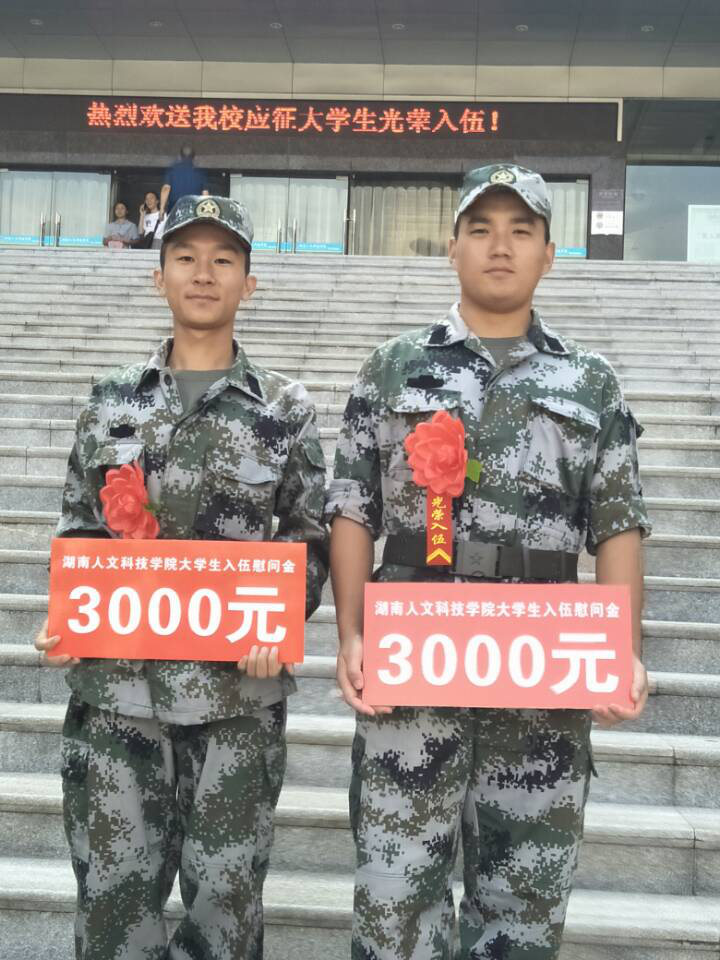 对杨傲、陆扬同学的积极应征和役前表现,我院师生很是赞赏,对他们的顺利入伍表示了热烈的祝贺。真心希望他们珍惜当兵的机会,在部队刻苦锻炼,努力成才,不辱使命,早传佳绩!也希望在校读书的热血男儿立志奔赴绿色军营,去实现自己的军旅梦想。