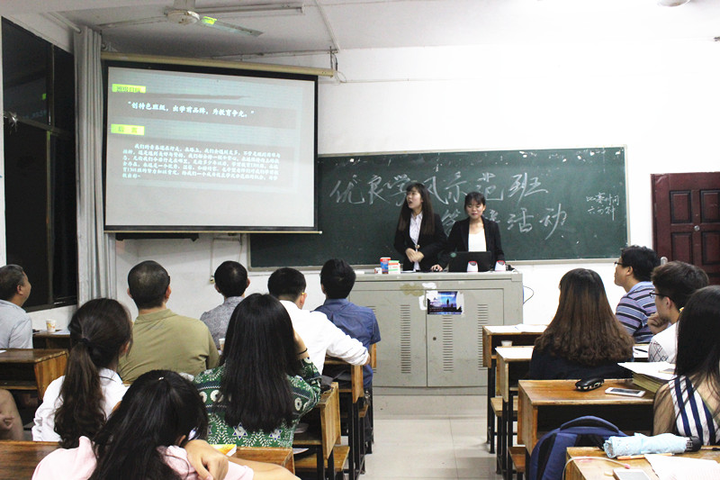 6月15日晚,我院在甘澍楼205成功举办“优良学风示范班”答辩活动。我院刘超良院长、徐建东副书记、李国强副院长、各班班主任及学生干部代表担任了此次活动的评委。此次答辩活动经过了“班级申报一学院申核一现场答辩”三个工作环节,经抽签定序,9个班级代表逐一登台展示学风和回答提问。会场上,评委和观众们为各班良好学风建设的非凡之处及亮点、特色报以热烈的掌声和惊喜的喝彩声。这次答辩活动,既是竞选和角力,又是交流和学习,让大家见证了不一样的班级,不一样的学风学貌,不一样的优良特质。最终,学前教育1302班、人文教育1301班、应用心理学1402班、人文教育1501班、学前教育1501班被评为“优良学风示范班”。