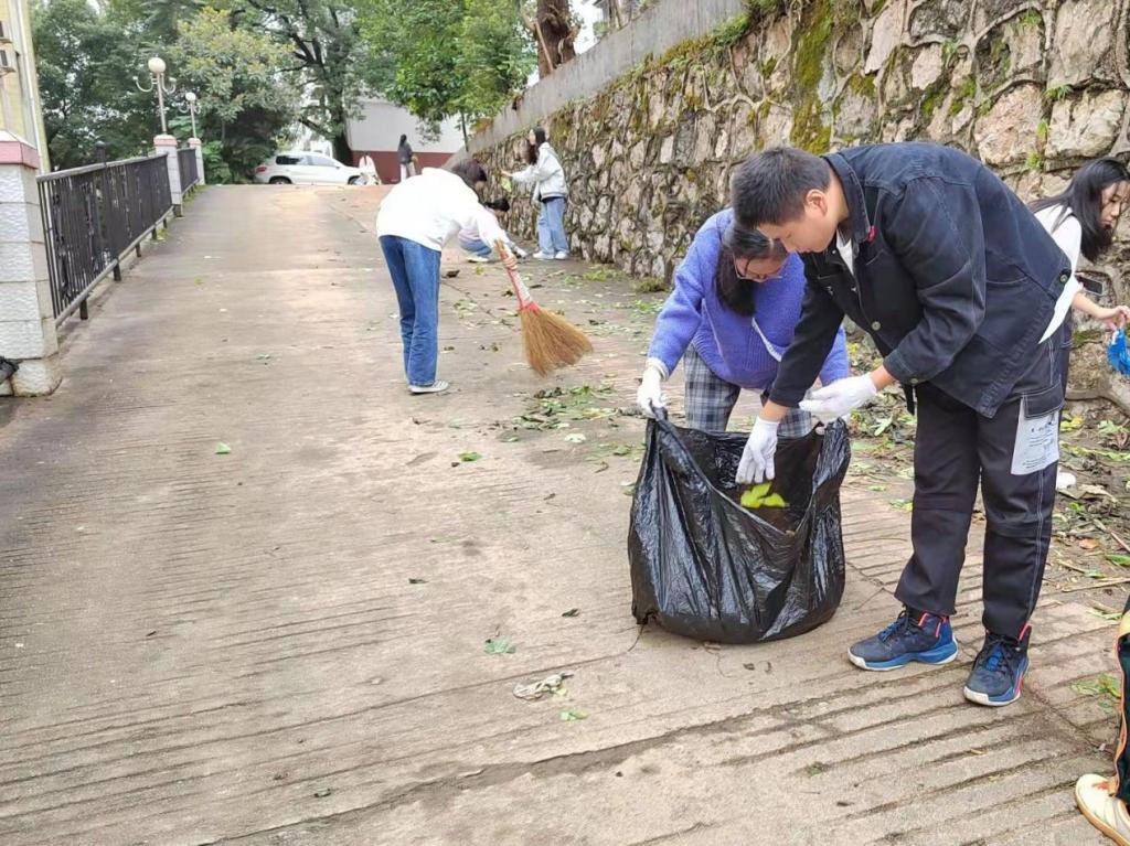 11月1日中午,beat365中文官方网站“守望花田”活动按照惯例在学校各处绿化地带照常举行。教育学院21级学生在雅韵楼前集合完毕后便开始清理各种垃圾。