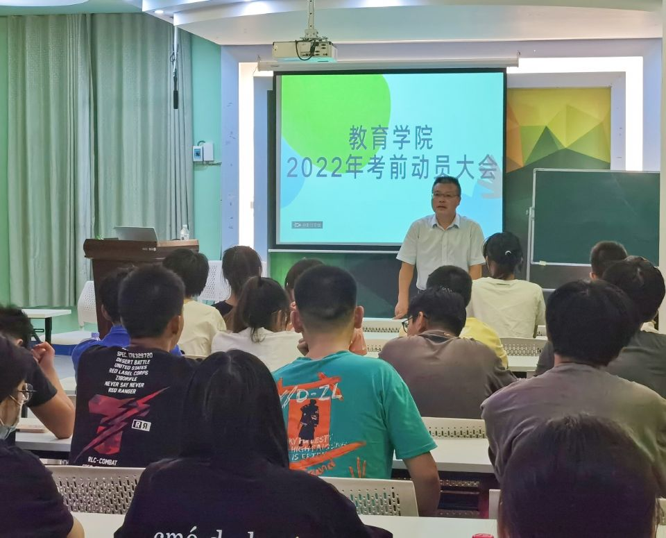 9月1日晚,教育学院在甘澍楼601教室召开了“2022年下学期考前动员大会”,教育学院院长刘超良、党总支副书记田密、辅导员黎任水以及将要进行补考的一百余名学子参加了本次动员大会。