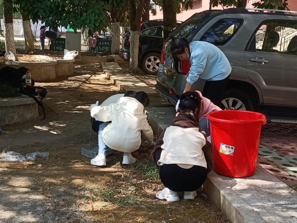 10月12日中午,教育学院在雅韵楼前开展“守望花田”活动。同学们领取工具后来到规定的区域开始清扫。