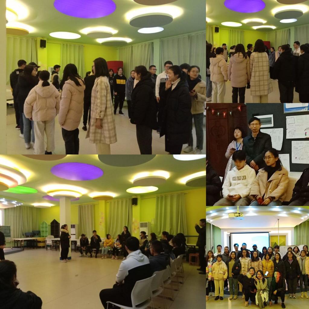 活动正式开始,主持人先带领同学们做了暖身运动——“造反运动”,同学们依次自我介绍,相互认识。随后开始了团辅项目,在此期间徐建东莅临现场,观看并指导同学们进行活动先进行的是“虎克船长”。同学们在主持人的带领下从不懂到逐渐的能参与进去并且玩的很开心。接着是“猜成语”活动,考验同学们之间的默契,首先由心理部的小伙伴进行了演示,接着同学们其乐融融的进行了起来,笑声此起彼伏。最后一个项目是“解手链”分组进行,同学们相互帮助,相互配合,甲组围成的圈在两分钟内就解开了,其他组的同学们都不禁惊叹他们组厉害,迫切的询问方法,想取取经。在所有的项目进行完后,一些同学上台分享了他们的感受。