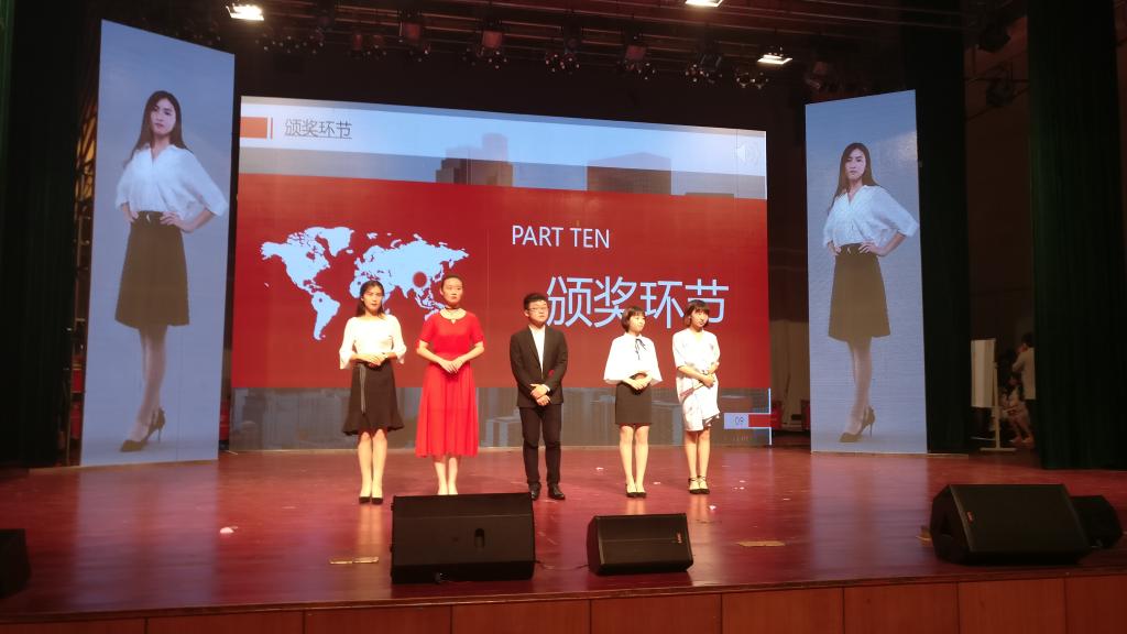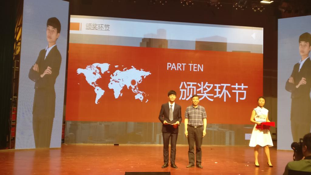 总决赛分两个环节,第一个环节是选手们以PPT的形式展现自己的职业生涯规划,第二个环节是职场情境表演环节,我院选手在两个环节表现非常优秀,获得校领导、评委老师、和现场所观赛观众的好评和阵阵掌声。最终,我院选手郭材欣同学以92.86的高分获得本次的冠军,校党委郭军书记亲自为郭材欣同学颁发荣誉证书和奖金。另一选手姚宏艳同学也获得本次比赛三等奖的好成绩。