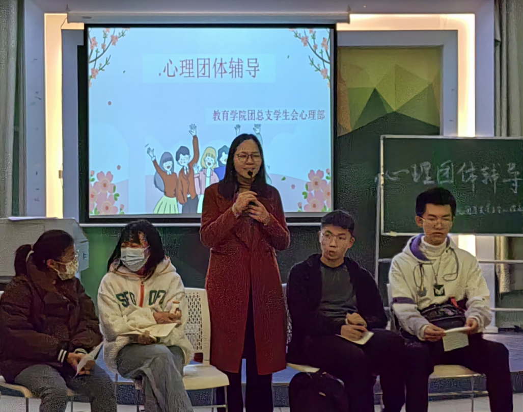 11月22日晚,教育学院在甘澍楼601开展以“敞开心扉交往,适应大学生活”为主题的心理团体辅导活动,学院熊珍明老师、心理专干梁鑫老师以及部分22级新生参与。