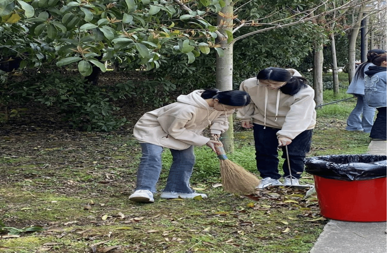 阳春三月,春暖人间。迎着正午的阳光,同学们热情洋溢,明确分工后积极投入清扫工作中。不怕脏、不喊累,仔细清扫每一处垃圾,以实际行动践行雷锋精神,为校园的美丽贡献自己的一份力量。他们三五成群,有目标、有规划地将草坪分成几块,以小组为单位同时清扫。堆积的落叶树枝要打扫干净,微小的纸屑垃圾也都逃不过同学们的眼睛,他们埋头苦干,势要将无私奉献为大家的雷锋精神贯彻到底。很快,在同学们认真仔细的打扫后,雅韵楼前这一片林间花园变得干净且舒适。最后在督察部干事的检查评分后,本次守望花田活动也落下尾声。