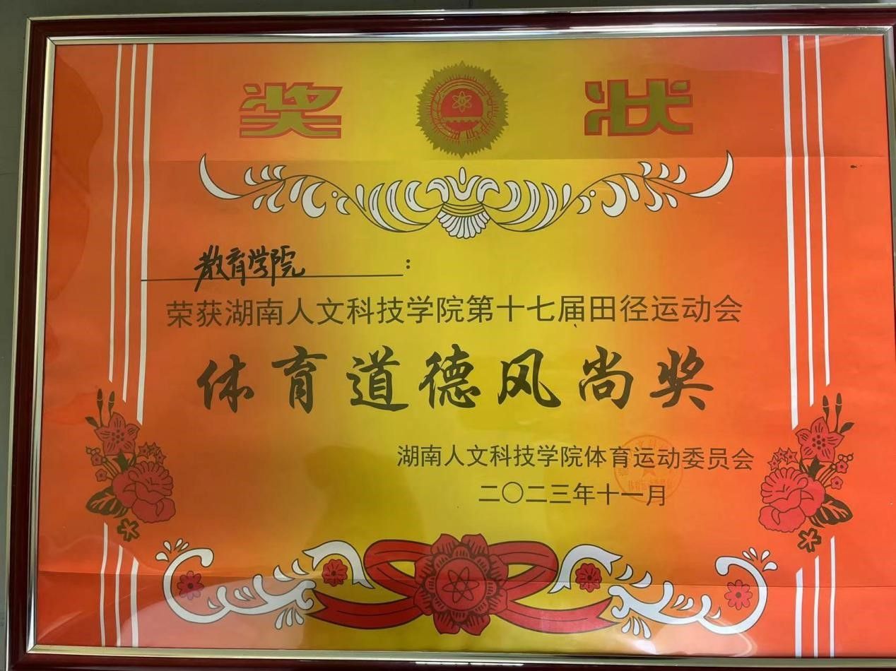 通过顽强拼搏和不懈努力,学院运动员汪思吾、罗珊珊、卓依轩、赵国良、周文倩等人荣获了小垒球、女子1500米第一名等多项单项荣誉,在接力、跳绳等团体项目中也取得了优异成绩。学院获得甲组团体排名第六名及体育道德风尚奖。