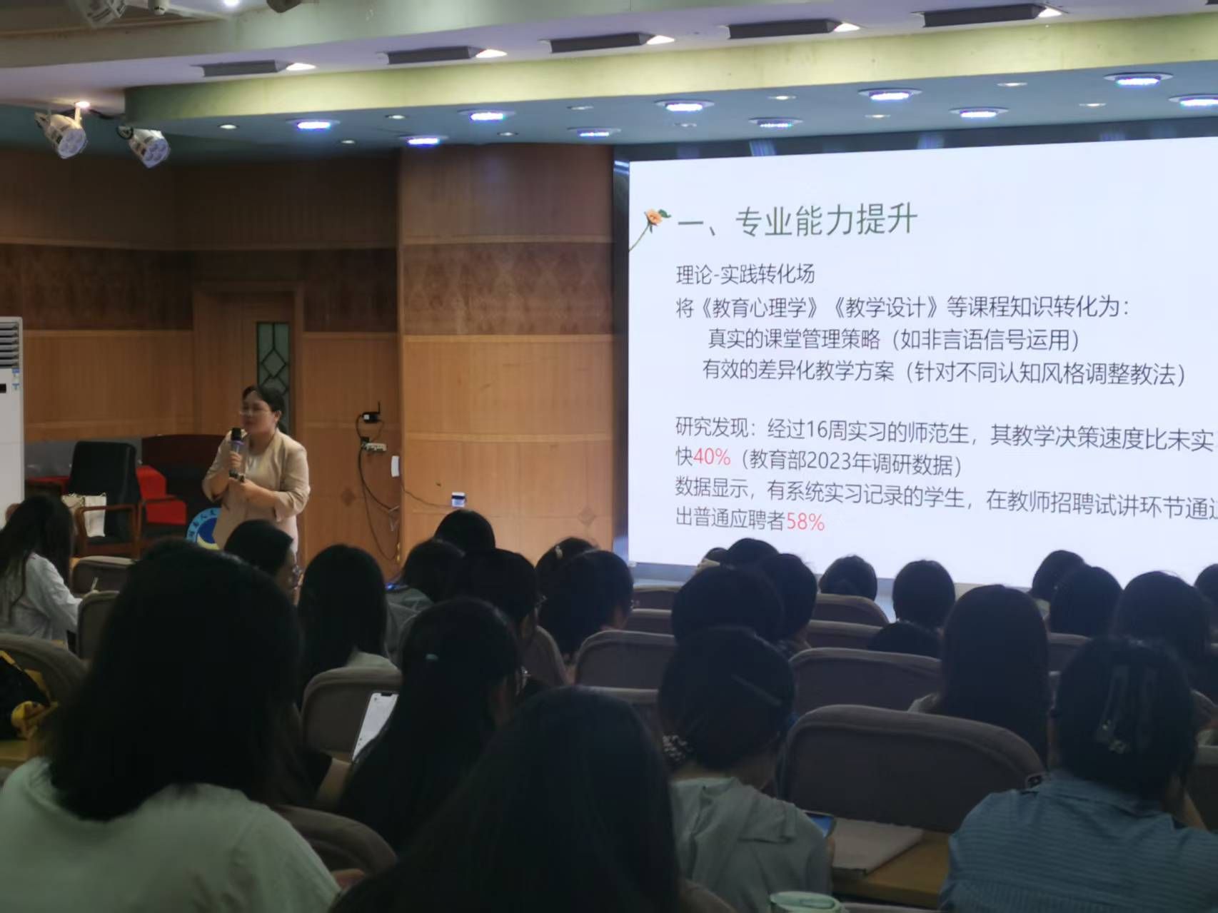 2025 年6 月6 日,娄星区李丽中小学心理健康教育名师工作室主持人——娄底三中李丽老师应邀来学校,为学生做中学心理健康教育工作辅导讲座,为下学期即将进入实习阶段的2022级学生就中学心理健康教育工作的主要内容及其与本专业实习生专业成长的关系,进行了较为详尽的讲解,受到22级学生的欢迎。