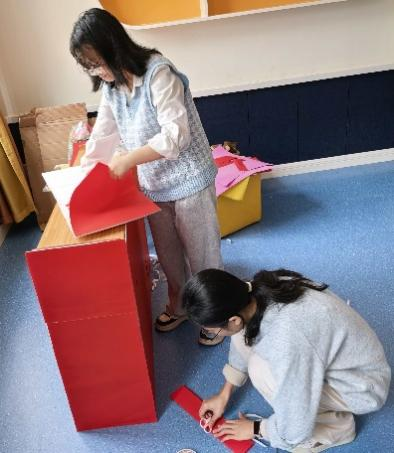本次区角创设是实习生们10月份教育实习的核心任务。在为期两周的集中创设期间,团队12人在园方指导老师的协助下,完整经历了从理念构思、设计规划到材料准备、动手实施的全过程。他们充分利用环保材料,将废旧纸箱、泡沫板、瓶罐等变废为宝,巧妙地制作了“海底捞”、“蜜雪冰城”以及“你的明治”等6个区角游戏。