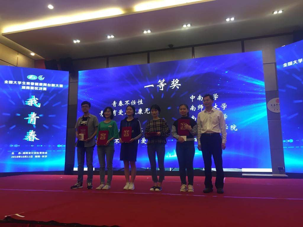 10月11日,全国大学生青春健康舞台剧大赛湖南赛区决赛在长沙举行。来自湖南省15所高校选送的17个舞台剧目参加比赛。经过激烈角逐,我院吕薇老师等人指导、学前教育专业学生李新宇、李清媛、张桂容、张巧莲、易星辛表演的话剧《青春那些事》在比赛中荣获一等奖。