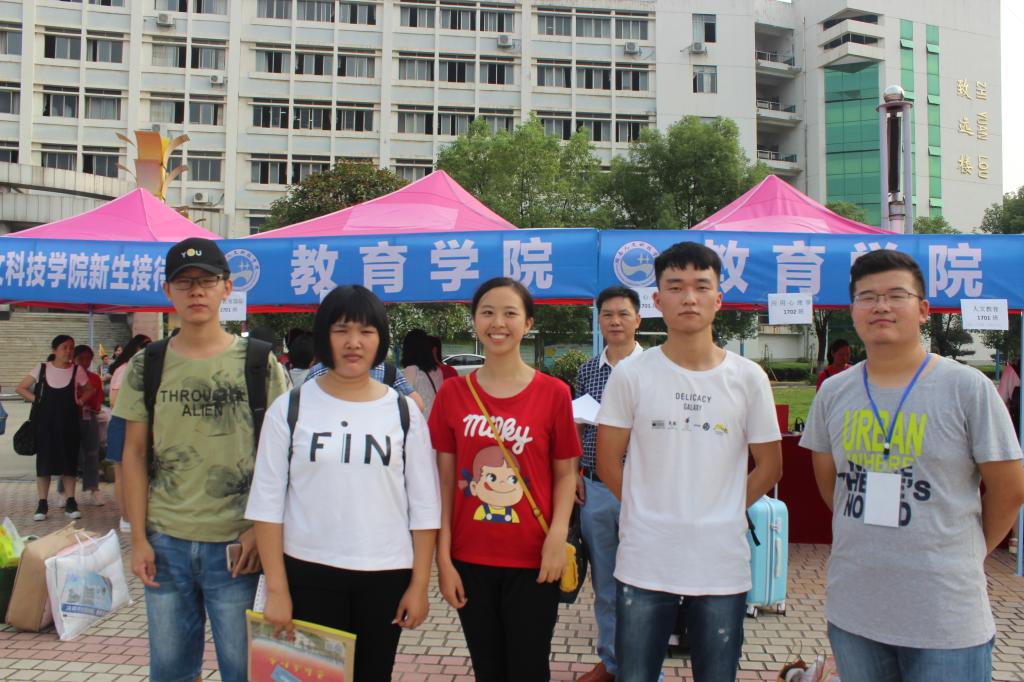 beat365中文官方网站2017届新生于2017年9月9日、10日开学报道。我院在海园广场摆点接待,做好迎接本院新生的工作。期间,教育学院党总支书记申忠明老师、党总支副书记徐建东老师、学工办曹婷婷老师、辅导员李佳维老师、辅导员谢琼老师守在摆点处并向教育学院的新生表示诚挚的欢迎。