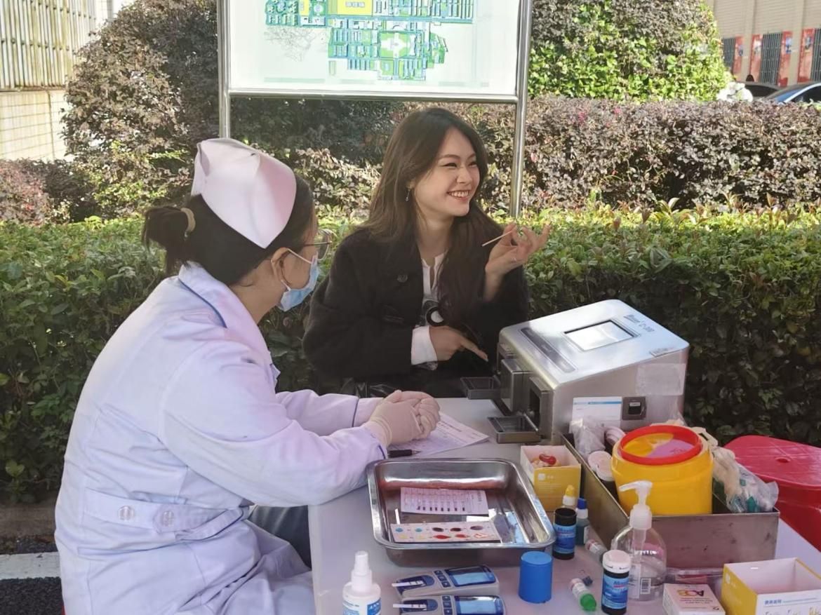 11月15日上午,教育学院无偿献血活动现场爱心洋溢、温情流动。学院党总支副书记张莎莎与辅导员刘依雪率先挽袖献血,以实际行动践行奉献精神,点燃了现场师生的献血热情。