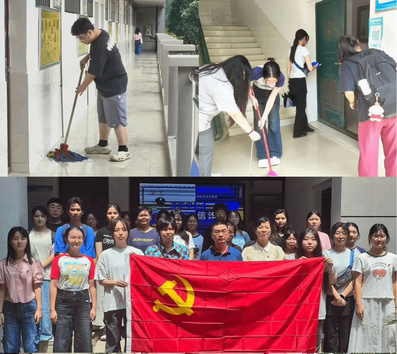 为了迎接2024级新生,给新生们营造一个干净、整洁、温馨的学习生活环境,让党员先锋和积极分子在志愿服务中践行初心使命,扛起责任担当,充分发挥学生党员的先锋模范作用,教育学院学生党支部9月11日中午在甘澍楼开展新学期迎新服务党日活动。