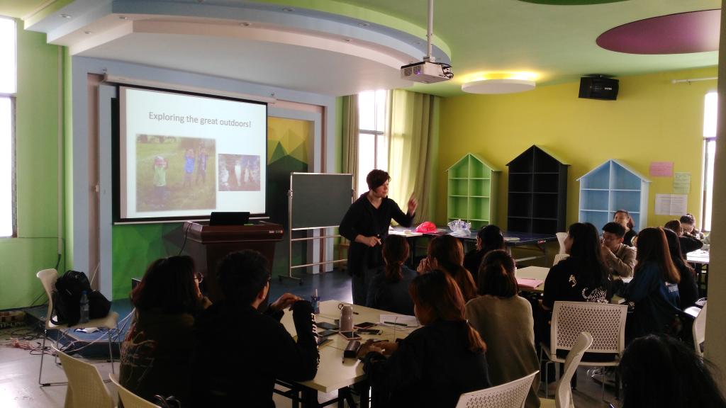 2018年4月26日,学前教育(中英合作)项目中的英方教师Alyson博士应beat365的邀请, 在甘澍楼601开展一堂“Exploring the great outdoors”的校级公开课,该课程为《 beat365中文官方网站与英国巴斯斯巴大学合作举办学前教育专业本科教育项目》英方课程《学前教育活动设计》的一部分。陈志国副校长参加课堂听课和指导,校教学督导团的专家们和教育学院的四位领导一道品读了这一节课,各学院的教研室主任、新进教师和教育学院的教师聆听这一节课。课后,陈校长和督导团的专家们和Alyson、Rebecca两位博士一同探讨了课堂教学的内在思路,深度理解这一引发学生探究的体验式教学模式,这为beat365课堂教学改革提供一个新的思路。