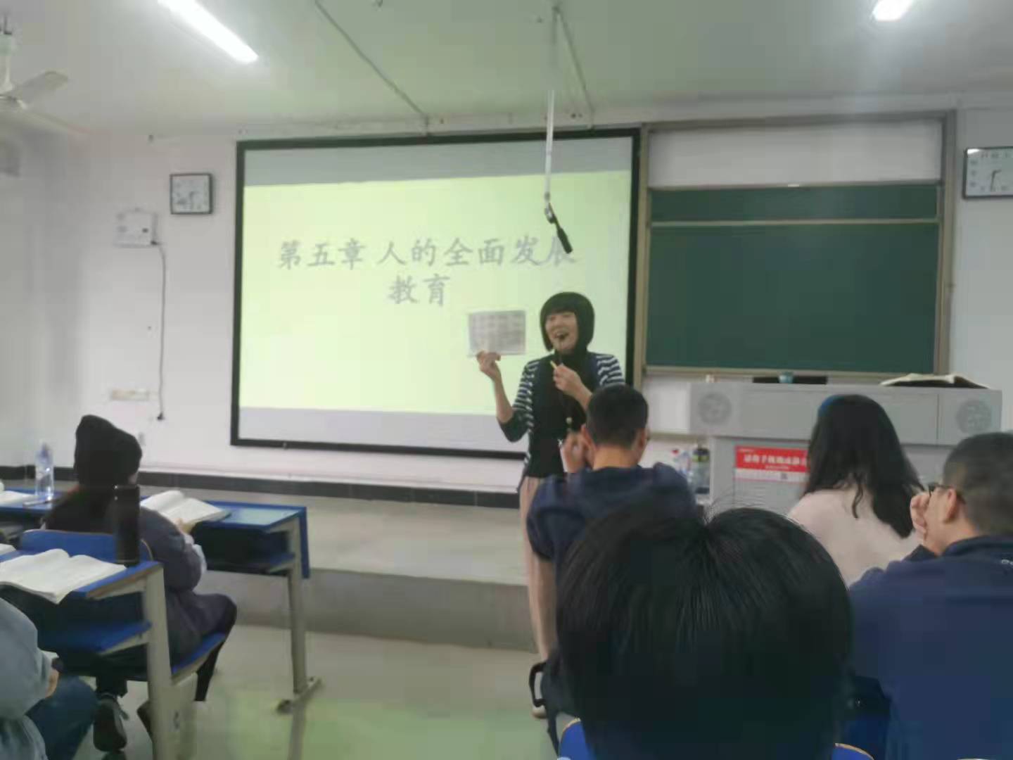 2021年10月27日下午,在致远楼512教室,我院 “湖南省高校教学能手竞赛”一等奖获得者、“湖南省十佳教师” 陈杰副教授讲授院级公开课,课程内容为“人的全面发展教育”。质量监控与发展规划处副处长、心理学教授李国强,应用心理学教研室主任王旭红以及部分教师代表观摩了此次公开课。